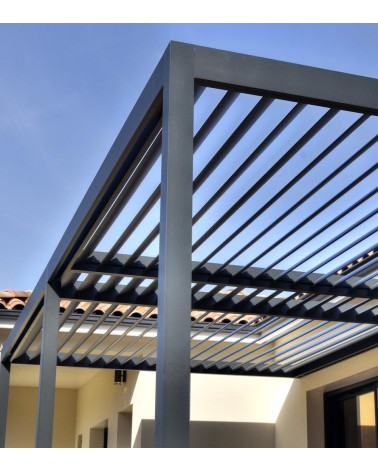 La pergola bioclimatique KALOR permet d'améliorer la luminosité et la ventilation en position ouvertre, grâce à ses lames de forme innovante ovale. L'ouverture et la fermeture des lames de notre pergola bioclimatique permettra d'assurer une régulation optimale de l'ensoleillement, de la luminosité et de l'apport de chaleur.